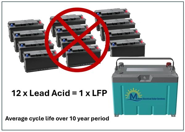 SLA 500 average cycles per battery Vs premium LFP 6000> cycles